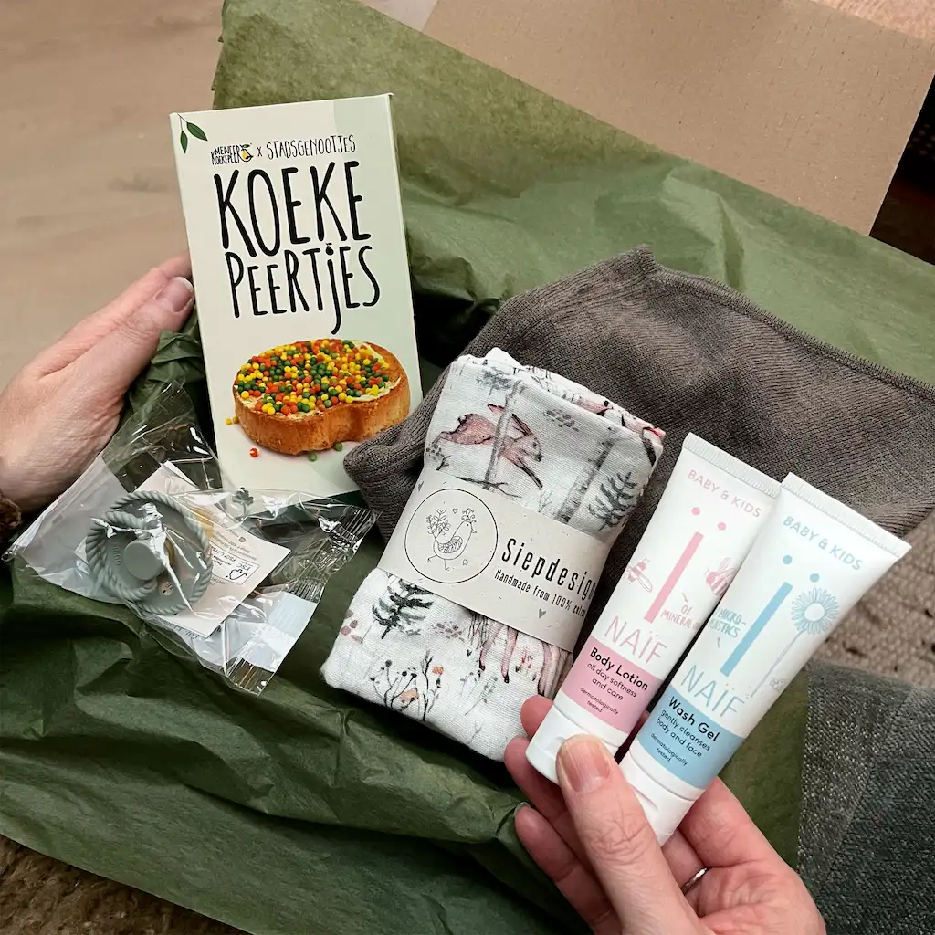 Geef kraamcadeaus zonder zelf de deur uit te hoeven! In dit cadeaupakket vind je diverse geschenken die zowel ouders als de baby goed kunnen gebruiken. Het is een ideale verrassing voor een babyshower of wanneer je niet in staat bent om zelf op kraambezoek te gaan, maar toch je felicitaties wil overbrengen. Ons kraamcadeau, genaamd Baby essentials is zorgvuldig samengesteld met duurzame cadeaus die perfect passen bij de behoeften van ouders en de baby gedurende het eerste jaar.