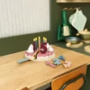 - Bestaat uit 6 taartpunten, schaal, taartschep, 5 toefjes slagroom, 5 kaarsen en cijfers van 1 tot 5