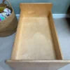 Houten poppenbedje die een opknapbeurt kan gebruiken.